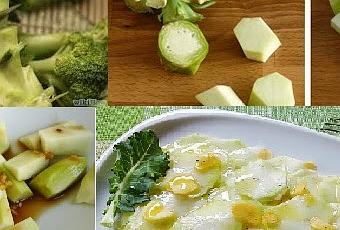 - Una deliciosa ensalada con los tallos y sus ramas cocidas, acompañada de pimientos rojos, lechuga, zanahorias pueden ser frescas ralladas o cocidas y una buena cantidad de apio finamente picado, puedes aliñar tan sólo con limón y sal, o preparando un rico aliño de vinagre, aceite de oliva, orégano, sal. Es un acompañamiento ideal para carnes a la parrilla, carnes fritas o simplemente una deliciosa ensalada en un caluroso día de verano, animate y disfruta de las propiedades y ventajas que tiene usar el brócoli completo, tallos y ramas.
