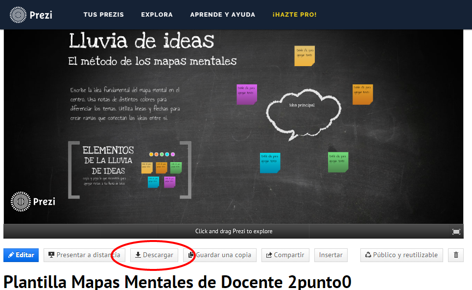 Generalmente, un usuario de Prezi realiza sus presentaciones en el sitio (ver cómo comenzar una presentación Prezi) y las utiliza desde allí mismo o las ubica en un blog o sitio web.Esto posibilita que desde cualquier lugar del mundo se pueda acceder a la presentació. El problema surge cuando hay que hacer una presentación y no se cuenta con conexión a la web. Será necesario tener con nosotros la presentación, ya sea en una notebook, pen drive o cualquier otro dispositivo.