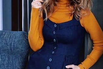Es mejor elegir un cuello de tortuga de lana un poco delgado o una cachemira. Ten en cuenta que esta capa inferior te calentará sin un volumen innecesario. Igualmente, encima puedes usar un vestido con tirantes, un vestido con escote V o con cuello y botones.