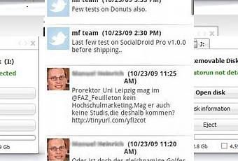 El avatar de los usuarios de Facebook es visualizado junto con sus mensajes y allí mismo, es posible el compartir enlaces, presenta un menú con los íconos correspondientes a la pantalla de inicio, amigos, perfil, mensajes, sitios, grupos, eventos y fotos, te da la idea de que sin duda, es un software cliente de Facebook. Social Droid está en descarga gratis para teléfonos Android, aunque muestra publicidad en su barra inferior.