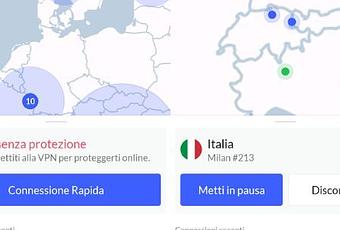 Pulsando en la pestaña vpn sin embargo, puedes ver todos los servidores del mundo: para conectarte a uno de estos, simplemente presiona uno de los marcadores ubicados en un país específico y espera a que la conexión al servidor seleccionado sea exitosa (lo que sucede dentro de un par). de segundos).