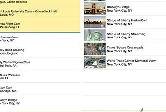 Por ejemplo, el destino Nueva York contiene webcams como La estatua de la Libertad, el famoso Puente de Brooklyn y Times Square