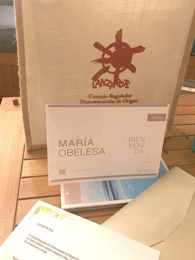 Un emplazamiento precioso donde nos esperaban con un montón de detalles como el de la Denominación de Origen Vinos Lanzarote que nos obsequió con un par de botellas de nuestros estupendos caldos malvasía.