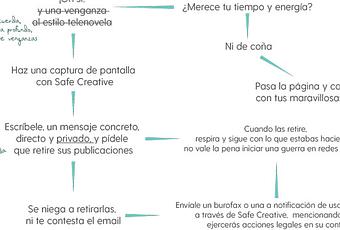 Ya con esto sabes lo esencial sobre tu marca, y para saber que hacer en caso de plagio, te dejo una lámina para que la tengas a mano y no te saltes ningún paso. Aún cuando te copien, si haces la denuncia de forma pública, pueden acusarte de difamación o injuria, y se te puede voltear la tortilla, que siiii que ya se, es injusto, pero recuerda que entre tantas mentes creativas, también pueden darse las casualidades, o que pienses que es una copia de tu trabajo, pero realmente no lo es. El primer paso es el esencial: respira y busca otra opinión objetiva, luego que estés calmada, si puedes entonces escribirle.