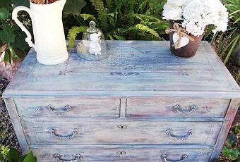 Me encantaba cómo quedaba después del azul Paraiba, sin lijar.....pero como este mueblecito me lo quedo para casa, lo blanqueé un poco con el tono Vainilla, aplicado a pincel casi seco....cuarto y último color....Lo pondré en la habitación que arreglé hace unos meses, en el piso de arriba.....ahí tengo la plancha, la ropa de guardar, estanterias con material de manualidades, en fin....cuarto de plancha y mucho más¡ En él voy poniendo todas las tablillas de Mix Media que voy haciendo....están forradas todas las paredes¡ La tipica habitación en la que van a parar muebles sueltos de aquí allá y que he intentado unificar para que sea armoniosa.....ese armario de color madera que antiguamente estaba en el salón, no estaría mal pintarlo.....