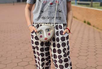 Hoy llevo pantalones y camiseta de Silvia Calles de su bonita tienda La Antigua, en Madrid, bolsito de La Casita de Wendy, colgantes de Mediterraneo Art y Fauna y Flora y pendientes también de Fauna y Flora