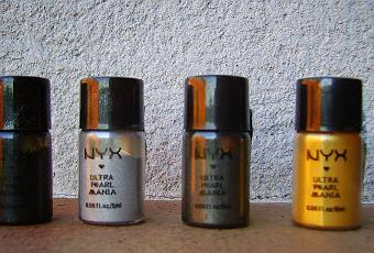 Busque entre mis pigmentos y decidí usar estos cuatro de Nyx que son super incómodos de coger con el pincel y a veces no los uso por eso.