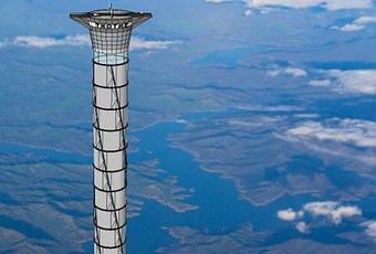 El modelo que propone Thoth Technology Inc es una torre inflable de 20 kilómetros de altura con un elevador eléctrico en su interior.