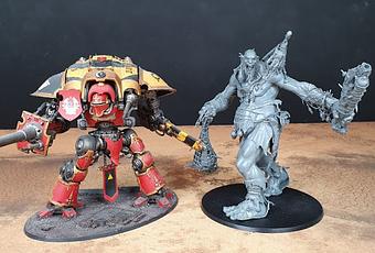 A la derecha de la imagen, siempre, un Mega-gargante (El Comekrakens) recien montado.Y a la izquierda tenemos para comparar alturas: Un Knight Imperial, un Gargante/Gigante, un Señor de la Transformación, Nagash, un humano normal y Archaon, que es único que junto a Nagash le saca algo de altura y en el caso de Archaon es gracias a la montura.