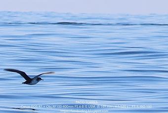 A pesar de la poca calidad de la imagen, se puede distinguir la silueta de la pardela balear en vuelo.