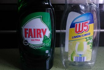 - Además cuando echas unas gotas de fairy en la esponja dura mucho para lavar la vajilla, sin embargo cuando uso el de Lidl tengo que reponer mas veces sobre la esponja, porque como que se gasta y no hace espuma, y eso que sale mucha mas cantidad por su boquilla, que por la de fairy, que la tiene mucho mas pequeña, para que salga poca cantidad.