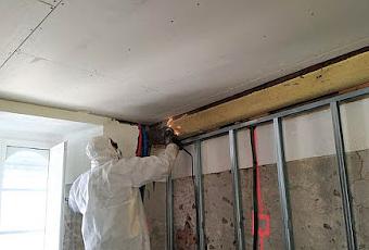 Descripción: Colocación de una pieza metálica en forma de U que envuelve la parte sana de la viga, anclada con tornillería y apoyada sobre el muro.
