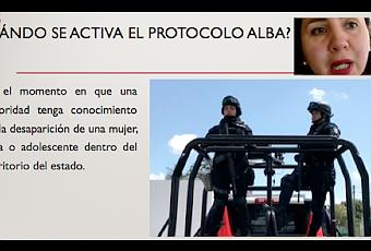La Comisionada subrayó que, en los casos de desaparición de mujeres, niñas y adolescentes, la Cobupem pone en operación mecanismos como el Protocolo Alba, a través del cual se generan acciones de búsqueda inmediata con la participación de elementos policiales de los tres órdenes de Gobierno, con el objetivo de lograr la localización de la persona con vida.