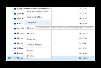 Nos dirigiremos entonces hasta aquel documento que nos interese. Pulsaremos con el botón secundario del mouse sobre el mismo, este es el derecho en la mayoría de los casos. En el menú contextual que aparecerá en pantalla seleccionaremos “Compartir”.