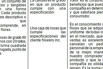 El siguiente estudio realizado por una de las mayores importadoras de flores en los Estados Unidos muestra los aspectos consideran como Valor en un productor de flores y el Valor que identificaron de su empresa para sus clientes: