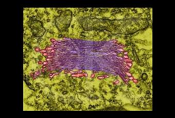 El complejo de Golgi, también conocido como aparato de Golgi, consiste en cisternas aplanadas, discoides con rebordes amplios relacionados con vesículas emergentes.Realiza funciones específicas, tales como: