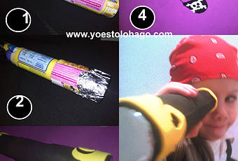 Usando unos rollos hechos del cartón de unas cajas vacias, de diferentes diámetros y encajados uno dentro de otro, algo de papel de plata y en mi caso, porque me gusta el tacto, forrado de gomaeva y con algunos detalles, hemos creado algo así: