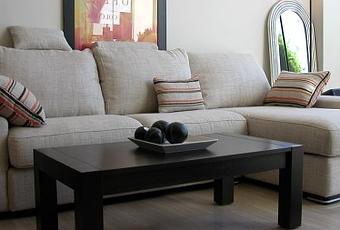 La posición del sofá en el salón ha de ser lo más favorable posible, ya que se trata de una de las habitaciones en la que más tiempo de calidad se pasa dentro del espacio doméstico. Es en definitiva el lugar en el que tienen lugar los grandes eventos de convivencia de la casa. El sillón ha de ubicarse de manera que sea posible ver la entrada de la habitación de forma directa o indirecta mediante algún espejo o revestimiento reflectante. El asiento principal no debe de estar frente a la puerta principal, ya que de esta manera la relación que se crea entre el acceso y el espacio de descanso no es tan agresiva. Tampoco es adecuado que el sillón esté de espaldas al sofá. Si así fuese, lo adecuado sería proteger este punto de contacto mediante algún elemento situado entre sofá y ventana, como plantas, libros o esculturas. En general la posición del sofá no ha de ser muy alejada del cerramiento de la habitación, de la misma manera que esa tensión se afloja mediante la disposición de un elemento intermedio que incorpore plantas o libros, el espacio intermedio debería tratarse.
