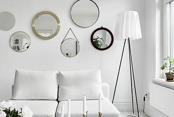Es interesantee observar las composiciones creadas con la repetición de un mismo elemento, como por ejemplo; varios espejos redondos de diferentes modelos, materiales y tamaños que crean un elegante conjunto decorativo en la pared. (Como en este artículo)