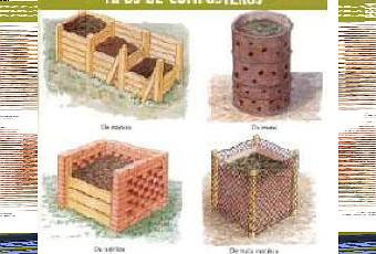 Tipod de composteras o recipientes para realizar el compost en casa.