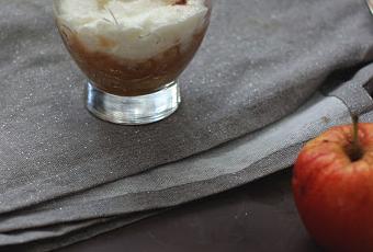 - Coloca en un vaso un par de cucharadas de compota, la crema suave por encima y espolvorea canela