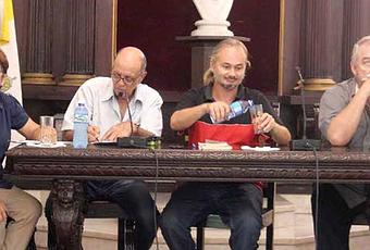 De izquierda a derecha, Teresa Díaz Canals (moderadora), Ovidio D’Angelo, Dmitri Prieto y Manuel Calviño (espaciolaical.com)