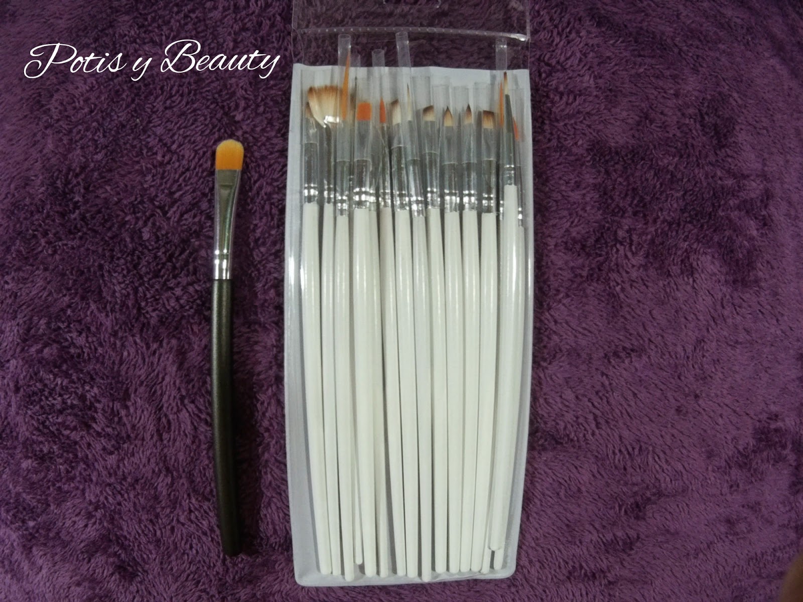 La primera es de pelo sintético y es para sombras en crema, Necesitaba una mas ya que tenía solo dos de este tipo. Precio: 1,43$ al cambio: 1,11€Link: http://www.buyincoins.com/item/41692.html#.VBxk8Pl_uSoSet de pinceles para uñas, la he comprado para usar unas cuantas como pinceles de ojos y otras para uñas. Necesitaba unas brochitas pequeñitas con pelo cortito para que sean mas precisas pero no las encontraba, y que fueran baratas claro, así que he comprado estas para intentar usarlas. Aún sólo he probado uno en los labios y de momento me ha dado buen resultado. Precio: 3,52$ al cambio: 2,74€Link: http://www.buyincoins.com/item/36034.html#.VBxl_Pl_uSoQue os parece lo de usar pinceles de uñas en los ojos? Lo habéis probado? Muchas gracias por leerme y hasta el próximo post!! Millones de abrazos