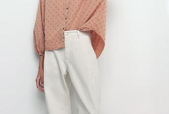 Blusa plumeti en color salmón, aunque también en gris, me encanta la forma de las mangas y la forma de la camisa, de Zara 29,95€