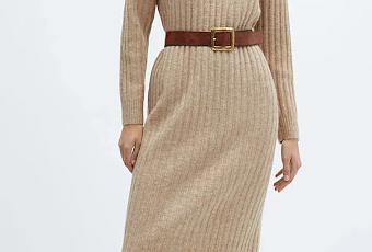 Vestido de canalé de cuello vuelto, me gusta porque no es de los pegados y es muy cómodo, de Mango 39,95€