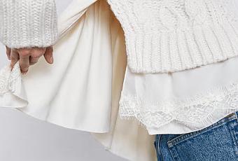 Jersey cuello perkins con botones, me gusta por lo diferente con aun me gusta el combo con el que lo han combinado, de Sfera también 23,99€Blusa de estilo romántico, de Sfera, 23,99€