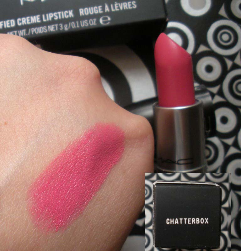 También, uno de los labiales que tenia en la lista, el tono Chatterbox. Con este me pasó parecido a la sobra Mulch. No había oído hablar de él pero cuando hice un back2mac (que os enseñé AQUÍ) me gustó el color y aunque me decidí por el otro, se me quedó en mente. Y al tiempo, otra vez igual, empezar a verlo por todos sitios. Alguna señal será...