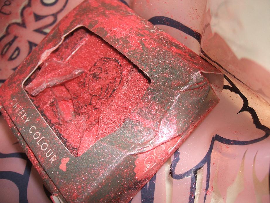 Y aquí está mi tristeza.., el colorete destrozado.Al principio tenia mi duda de cual cogerme, pero gracias a unas chicas forefas, me atrevícon el coral. Y la verdad es que se vé muy llamativo, ¿verdad?...