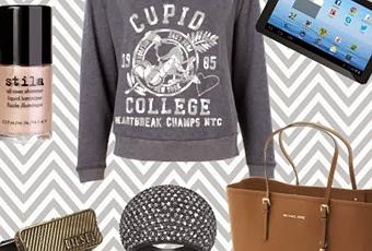 Por ejemplo: Maquillaje iluminador de la marca Stila, una sudadera de Tommy Hilfiger, una tablet Android, cinturón Diesel, anillo de Swarovski y bolso Michael Kors.