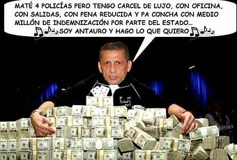 Comprensible la indignación de los familiares de los cuatro policías asesinados durante el "Andahuaylazo", llevado a cabo por Antauro Humala e instigado por su hermano Ollanta desde Corea del Sur, al ver que el sentenciado por el crimen de los agentes va a cobrar más de 500 mil soles del Estado, pese a que aún no paga las reparaciones a los deudos dispuestas por el Poder Judicial.