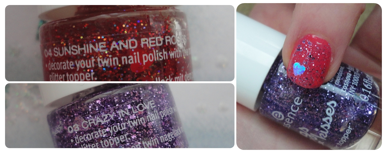 De la Edición Limitada de Hugs & Kisses me encantaron los esmaltes que tenían corazoncitos, así que cogí dos: 04 Sunshine and red roses (el rojo) y el 03 Crazy in love (el morado). El primero es para mi amiga Luci^^ y el moradito lo cogí para mi. Es un topper, es base transparente pero tienen glitters en colores y también corazoncitos!!! Son una monada, yo sólo he aplicado una capa pero con dos se ven más glitters :). Cada botecito contiene 5ml (son peques) y cuestan 1,99€ la unidad.QUITAESMALTE DE ACETONA de DIA: