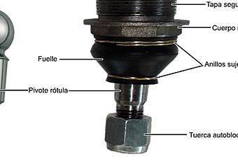En algunos vehículos podemos encontrar rótulas cuyo anclaje se asegura por medio de un taladro por el que se hace pasar un pasador.