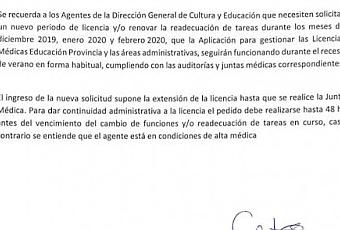 Comunicado de Renovación de licencias en la Provincia de Buenos Aires para docentes.