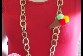Ya tenemos nuestro helado preparado, ahora vamos a coserlo a una cadena grande que teniamos en nuestro joyero y que no utilizaba porque era demasiado simple.