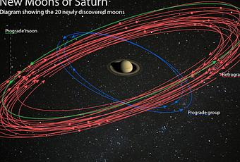 Solo 3 de las 20 lunas tienen movimiento prógrado, lo que significa que orbitan Saturno en la misma dirección que rota el planeta. Las 17 restantes tienen movimiento retrógrado, es decir, se mueven en la dirección opuesta.