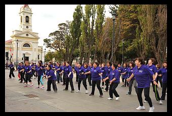 El encuentro reunió a un centenar de mujeres, quienes durante una hora realizaron baile entretenido en el frontis del Palacio José Montes, guiadas por monitoras de la Unidad de Actividad Física, Deportes y Salud de la Municipalidad de Punta Arenas.