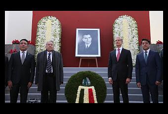 Acompañado de su padre, el ex Gobernador del Estado de México, Alfredo Del Mazo González, y de los presidentes de la Junta de Coordinación Política y del Tribunal Superior de Justicia estatal, Cruz Juvenal Roa Sánchez y Sergio Medina Peñaloza, respectivamente, el Gobernador Alfredo Del Mazo Maza depositó una ofrenda floral y montó guardia de honor, en el monumento a la memoria del homenajeado.