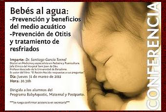El jueves 31 de marzo, a las 20:30, doy una charla en el centro Lenoarmi que intenta responder la pregunta de muchos padres "¿cuándo puedo llevar a natación al bebé?" Siempre que me la hacen les respondo que no van "nadar" ni a a "aprender a nadar" sino a estimulación a través de un medio líquido, en este caso el agua, cuando ellos ya lo estuvieron durante todo el embarazo (líquido amniótico). En ese centro se inicia un cursillo de iniciación de ocho clases para que aprendan a moverse con soltura asombrando a sus padres. Éstos, participan en esa actividad y también aprenden a moverse en el agua con sus bebés. Es una experiencia única.