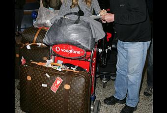 Sarah fue fotografiada en el aeropuerto mientras se paraba a firmar un autógrafo y pudimos verla luciendo un outfit muy cómodo para el viaje, un jersey de rayas, una especie de chal de lana gris y pantalones a juego. Pero lo que verdaderamente nos llamó la atención fue su voluminoso equipaje, casi todo de Louis Vuitton, que ella misma lleva en su carrito ayudada por su asistente que la sigue unos pasos más atrás. Una trend-setter que se precie viaja siempre con un abultado equipaje!
