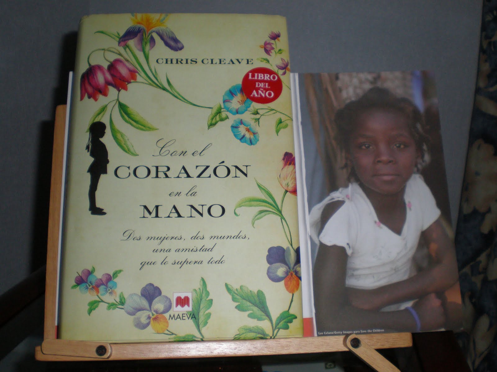 No sé si me queda algo en el tintero, si habré sabido expresar todo lo que la novela me ha dado a mí y me ha quitado. Tengo el libro a pesar de no ser mío lleno de marcas, casi todas pertenecen a reflexiones de Little Bee, y también alguna hay de Sarah o de Charlie. Pero si algo llegó a mi corazón y explica mi fotografía, fue una afirmación de la niña que no he sido capaz de encontrar entre tanta nota. Y es que ella expone que en Occidente cuando pensamos en África vemos a una niña de piel negra, con los ojos amarillos y una sonrisa, con su vestidito rosa desvaído… Esa misma niña me mira todos los días desde finales de febrero, forma parte de un diploma que le dieron a mi hijo por participar en una carrera para recaudar fondos para la reconstrucción de Haití. Esa misma niña para mí se convirtió en Little Bee y comparte mis horas de estudio y la de mis hijos y creo que por mucho tiempo que pase hará que no olvide la novela, ni la realidad de aquellas personas que huyen de su país para salvar la vida.