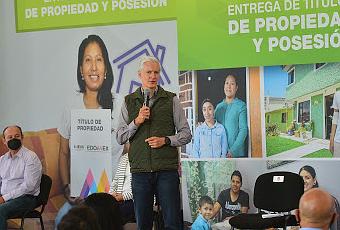 Alfredo Del Mazo informó que de los títulos de propiedad que se han entregado, el 49 por ciento han sido para mujeres, quienes ya cuentan con la titularidad y posesión de sus propiedades.