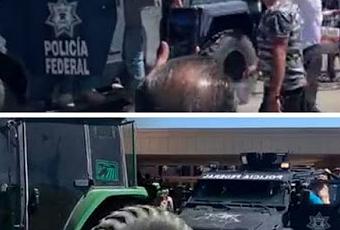 Los hechos se registraron en la Av. Tecnológico a la altura de las vías del tren, donde con ayuda de tractores agrícolas, productores arrastraron dos camionetas de CONAGUA.
