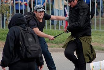 Según informó la policía local, “un grupo de 150 antifascistas y anárquicos se agruparon rápidamente en el lugar, comenzando a arrojar elementos contundentes“, indicaron.