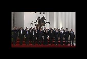 Caracas, diciembre 3 – Tras finalizar la primera sesión de la cumbre fundacional de la Comunidad de Estados Latinoamericanos (Celac), los 33 Jefes de Estado y de Gobierno y cancilleres participantes se tomaron la foto oficial del evento ante la estatua ecuestre del Libertador Simón Bolívar, en espacios de la Academia Militar de Venezuela, en Caracas.
