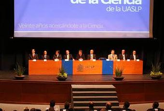 La ceremonia inaugural del XX Verano de la Ciencia de la UASLP contó con la presencia del doctor Juan Manuel Carreras López, secretario de Educación de Gobierno del Estado; del doctor Enrique Villegas Valladares, director del Consejo Potosino de Ciencia y Tecnología; del maestro Roberto Eduardo Galván Novoa, rector de la Universidad del Valle de México; del licenciado Gerardo Maya González, rector de la Universidad del Centro de México; del ingeniero Jesús Contreras García, director del Instituto Tecnológico de San Luis Potosí; del licenciado David Vega Niño, secretario General de la UASLP; y del licenciado Eduardo Kasis Chevaile, presidente de COPARMEX.
