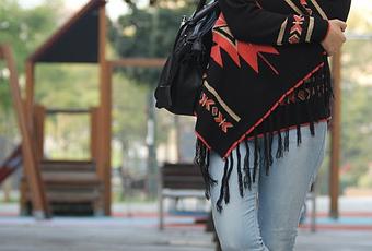 Me encanta este poncho, es como ir vestida con un abrazo permanente. Tan cómodo, tan calentito... Lo combiné con básicos, como siempre: camiseta negra, jeans, mis queridas superga y bolso clásico.